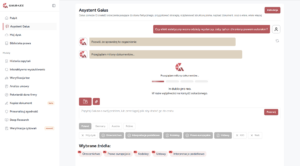W każdym momencie można wybrać kategorię źródeł, z których Gaius będzie korzystał przy odpowiedzi na nasze kolejne pytanie.